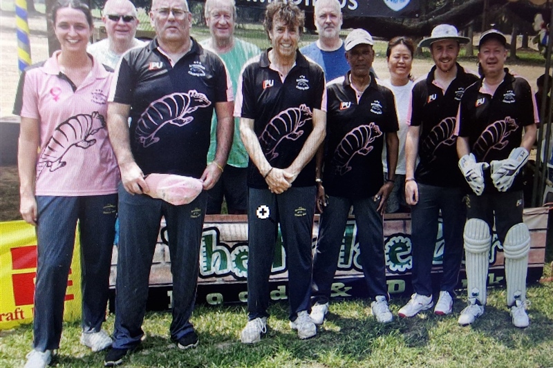 After his first ever tour last year as a spectator (wearing the same green teeshirt every day as in the picture) we welcome John 'Trunky' Dee as a player. John has not played cricket for approximately 60 years but having watched the Armadillos last year he felt he could at least be of a similar level to the rest of the players. Bob Le Hardon (trying to hide in the photo with his sun glasses on) is again starring having played a couple of games 10 years ago. Bob has matured in this time and it is believed he will be a bit of a superstar. Skeggs played around 10 years ago too and is fitter than ever and is also making a comeback.